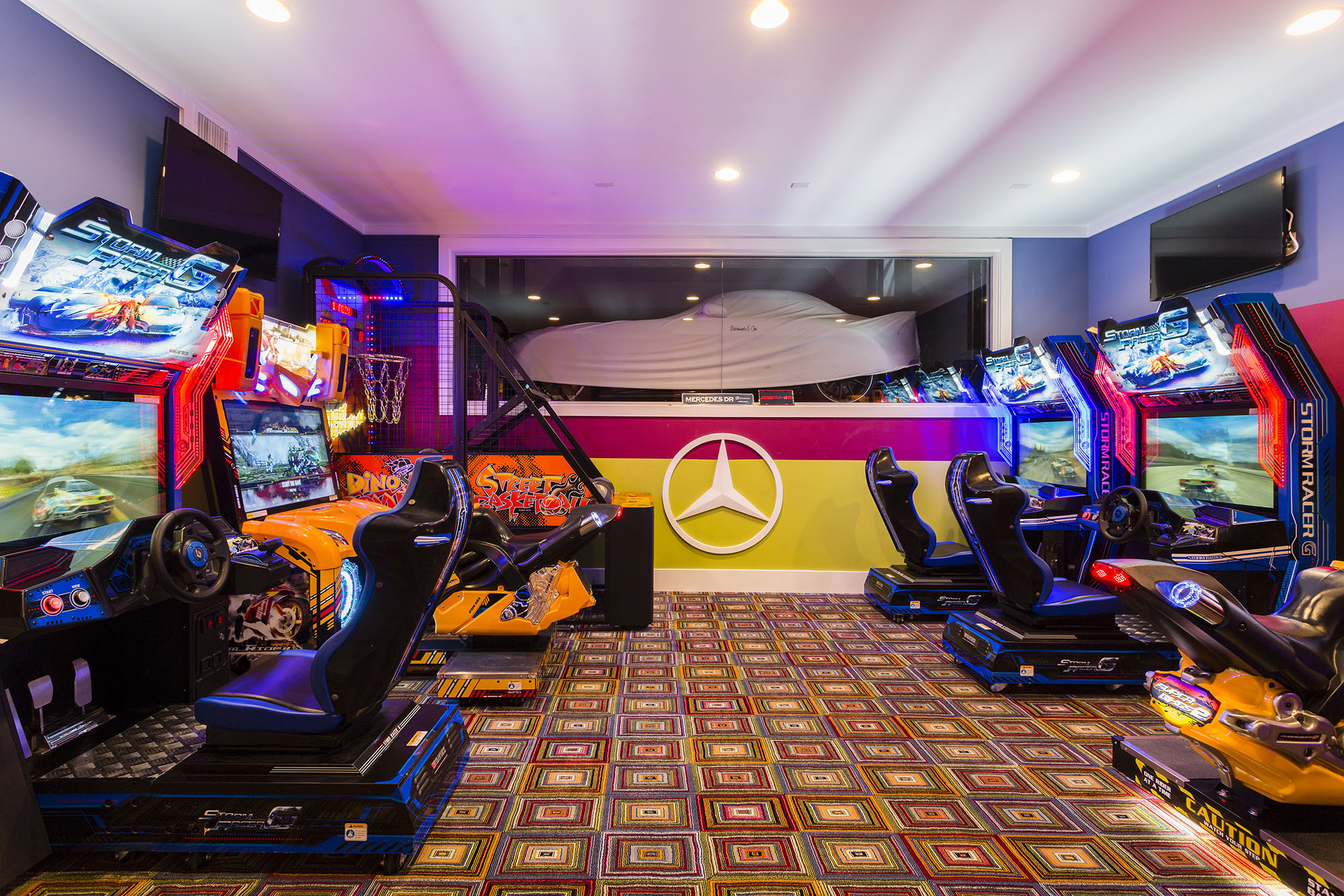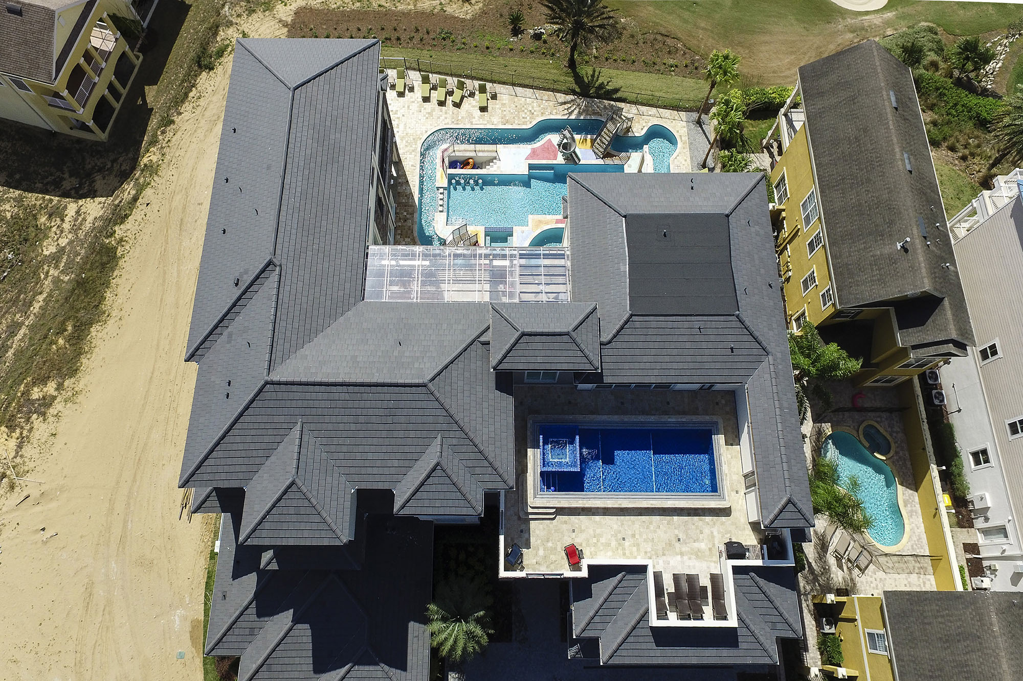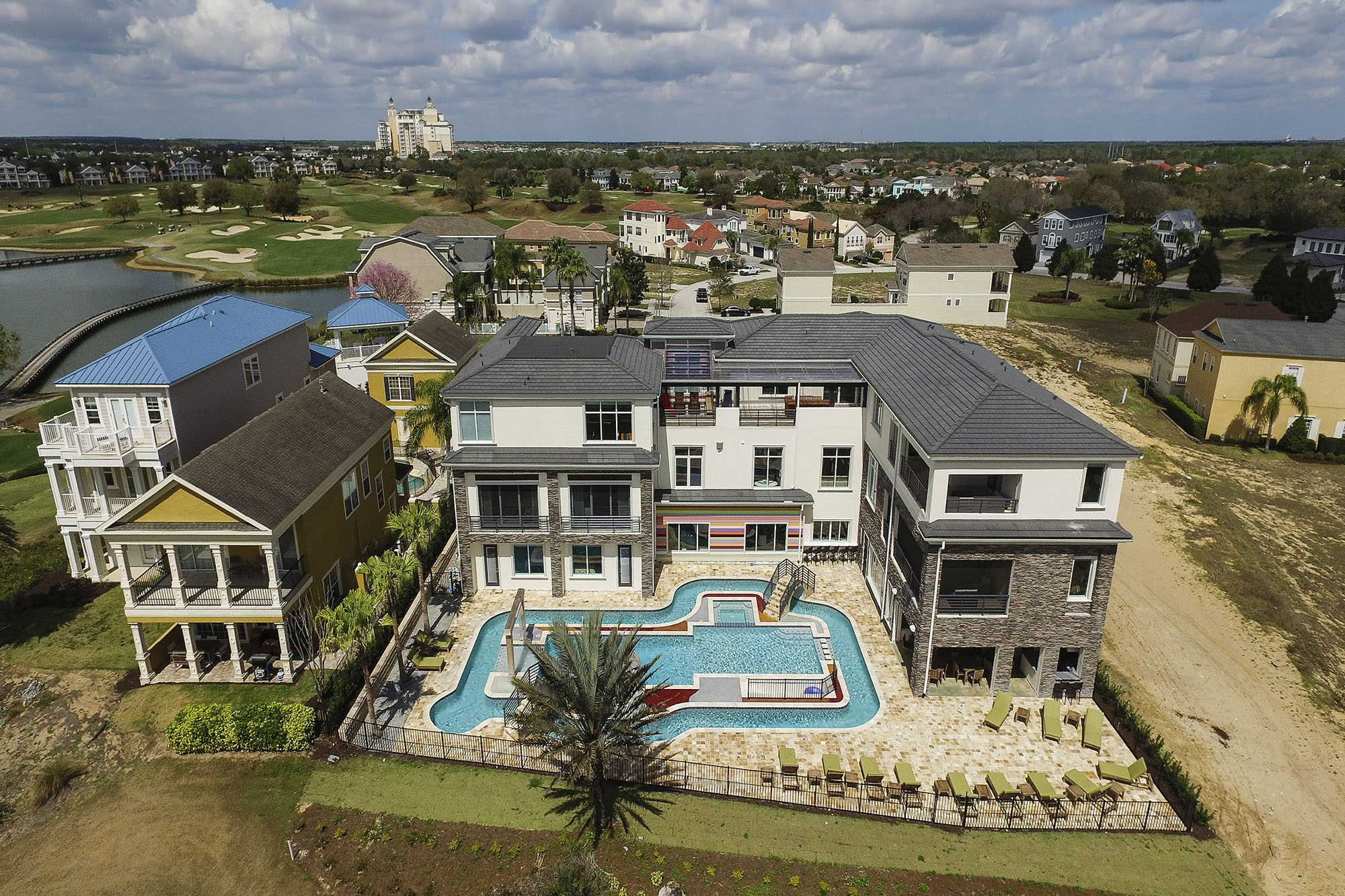 Stunning mansion with over 25,000 sq feet of luxury upscale living area. 14 bedrooms all with en-suite bathrooms which sleeps 30 persons. Private Lazy river;Roof top pool; Conference room for business needs.